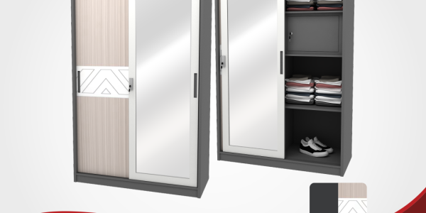Lemari pakaian berpintu cermin menghadirkan solusi praktis dan elegan untuk menyimpan pakaian sekaligus memperluas tampilan ruangan dengan sentuhan modern.