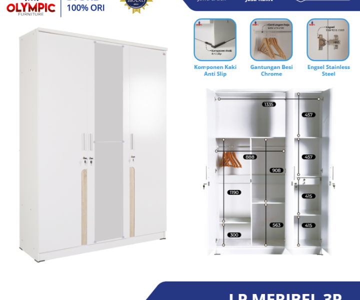 Lemari baju merupakan salah satu furnitur penting yang mendukung kenyamanan dan kepraktisan dalam menyimpan pakaian sehari-hari. Di pasar furniture Indonesia, terdapat berbagai pilihan lemari yang menawarkan berbagai fitur dan desain menarik. Salah satu pilihan yang sedang populer adalah Olympic Lemari Baju Tiga Pintu LP MERIBEL 3P. Lemari ini dikenal karena desainnya yang modern, kapasitas penyimpanan yang luas, serta kualitas bahan yang terjamin. Artikel ini akan mengulas secara lengkap berbagai aspek dari lemari ini, mulai dari deskripsi produk, material, desain, dimensi, fitur, keunggulan, warna, perawatan, harga, hingga ulasan pelanggan. Dengan informasi lengkap ini, diharapkan Anda dapat menentukan pilihan yang tepat sesuai kebutuhan dan gaya ruang Anda.